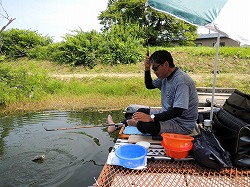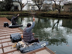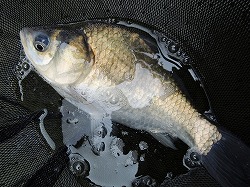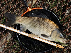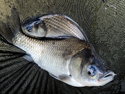 24’へら 釣行記 2024年11月25日(月) ・・・ハンディカムのデビュー戦は超食い渋りで大撃沈を喰らった玉川の池・・・ 今日は、先日購入したハンディカム(中古)のデビュー戦だす。 練習を兼ねて、使い勝手の実地検証してみます。 ![]() 時雨に見舞われる不安定なお天気なので今季初テント! 晴れの予報に反して、時折、暗雲に覆われて時雨に見舞われる不安定なお天気なので、防寒対策も兼ねてテントを設営。 今日は、13尺天々両ダンゴの底釣りで挑んでみます。 ![]() 重いダンゴはNGでした ハンディカムのデビューだす K氏はグルテンとダンゴのセット チャンベが頻繁にもじるので活性が高いと勘違いして、ペレ道主体の重いダンゴにしたのが大失敗! 実は超食い渋りで、重いダンゴには頑として口を使ってくれず、軽いグルテンにしか口を使ってくれないのだ。 そんなこんなで、午前中は時速1枚のペースで3枚の貧果。 ![]() チョーチン抜きセットだばイケルかも? 両グルの底釣りで確実に竿を絞るW氏 昼食後は、7尺チョーチン抜きセットに変更。 へらが寄って来るまで20〜30分ほど要したけど、ポツポツ飽きるペースで竿を絞る。 へらの寄りが薄いからなのか、一枚釣る毎にピタッとアタリが遠退いてしまうのだ。 バラケを食べてくることは一度もなく、全てクワセを食べてきているので、ハリスを30cmから40cmの伸ばしてみるも・・・大した効果はなく、飽きるペースでしか釣れなのだ。 ![]() もう少し軽いバラケの方が良かったかも? 情けないけど超激渋に大撃沈だす そんなこんなで、13時〜15時まで2時間の抜きセットで10枚を追加してトータル13枚の釣果!(情けない) バラケも、ヤグラ主体ではなくマッハなど軽いバラケを主体とするべきでした。 いやはや、超食い渋りで浮子の動きはイマイチだったので、ハンディカムの実地検証どころじゃなかったのだ。 【 竿 】京作 13尺 ⇒ 結月 7尺 【浮子】月山作 18 ⇒ WCG 80 5 【道糸】フロロ 08号 ⇒ ナイロン 1.0号 【ハリ】改良スレ 5号(45cm・55cm) ⇒ 上:関スレ 9号(8cm) 下:関スレ 2号(30cm ⇒ 40cm) 【エサ】ペレ道200・わたグル50・水100 ⇒ バラケ:粒戦50・細粒50・水・ヤグラ400・セット専用200・BBフラッシュ200 クワセ:力玉(大)サナギ漬け ハンディカムの液晶モニターでは全く確認出来なかったけど、PCにダウンロードしたら、ピントのアタリハズレが激しくて・・・パキッと映っていることもあれば、ボケボケで何がなんだかさっぱり分からないこともあるのだ。 もう一度、取説をおさらいして、ピントの固定方法を覚えるのが先決だす。 2024年11月16日(土) ・・・セット釣りの動画を撮影したけど、実はダンゴの地合いだった玉川の池・・・ ![]() 濃霧で何処を走っているのか分からない 微妙な向かい風で竿が振り辛い 週明けから雪の予報が出ているため、どうしても今週中に竿を出しておきたくて、中一日での釣行。 今日も秋晴れの予報なので、我が家周辺と仙北平野は濃霧にスッポリ包まれている 釣りを始める前に、まずは熱いコーヒーを飲んで体を温めます。 今日は「セットの釣り」というテーマのもと、小さな浮子を使ったチョーチンセットからスタート! ![]() 隣の方にエサを訊ねられたけど・・・ ようやくクワセを食べてきた! 底釣りは安定しているようだす 朝の冷え込みが厳しかった割には活性が低いのか?高いのか?どっちつかずだすども、クワセには殆ど口を使ってくれず、時折竿を絞るのはバラケを食っているのだ。 バラケにばっかし口を向けるので、40cmでスタートしたクワセのハリスを少しずつ詰めて接近戦の釣り。 ハリスを27cmまで詰めても、バラケを食べてくる状況は変わらず。 何れ、バラケを食べてもクワセを食べても、釣れれば1枚は1枚ですから、ということで、午前中の釣果は33枚! 昼食後は、グラスムクの浮子を使った抜きセットの撮影をします。 ![]() この時期はカップ麺が体に染みて美味い! これまた、バラケを抜きながら誘いを掛けるも、悉くバラケを食べてくるのだ。 おまけに、へらは浮子の周りに湧き湧き状態。 何しろ、8〜9割がバラケを食べてくる状況って、どう考えてもダンゴの地合いだすべだ。 そんなこんなで、クワセを食べてくれないセットの釣りは14時半で終了します。 ![]() 良型ばっかし入れパクだす! ストレス解消! 口直しが出来ました 動画の撮影を止めたのを機に、口直しに浅ダナ(セミカッツケ)両ダンゴでキメてみます。 すると、16時までの1時半、入れパク状態を演じて88枚の釣果!・・・両ダンゴの浅ダナでストレス解消! 【 竿 】皆空 8尺 ⇒ 結月 7尺 【浮子】T.S.Sting-L- ⇒ WCG 80 5 ⇒ X-TOUR S 【道糸】フロロ 0.8号 ⇒ ナイロン 1.0号 【ハリ】上:関スレ 8号(8cm)、下:関スレ 2号(40cm〜27cm) ⇒ 上下:関スレ6号(20cm・30cm) 【エサ】バラケ:粒戦50・細粒50・水200・ヤグラ400・セット専用200・BBフラッシュ200 クワセ:力玉(大)サナギ漬け ダンゴ:残ったバラケにBBフラッシュを差して空気を含ませたフンワリ柔ネバ 週明け、月・火と雪が降る予報だすども、その後再び