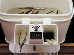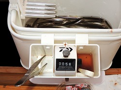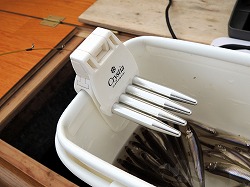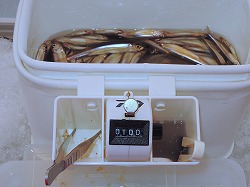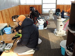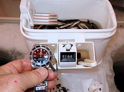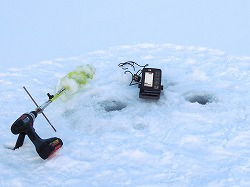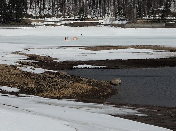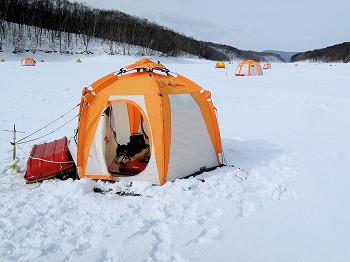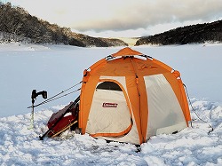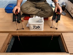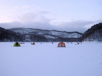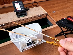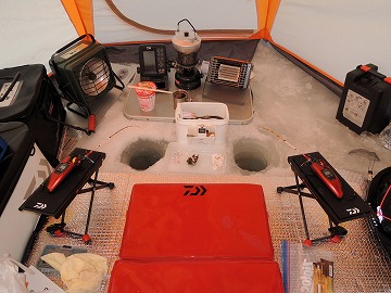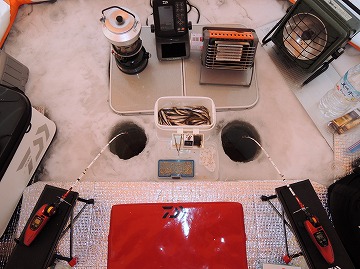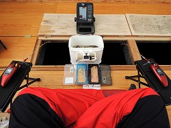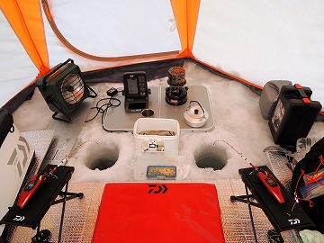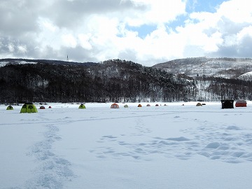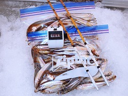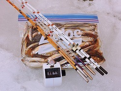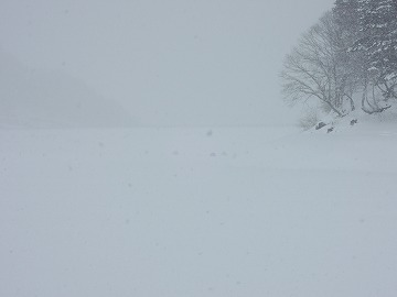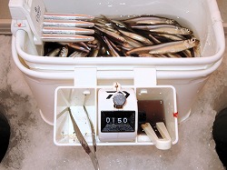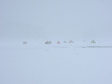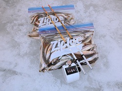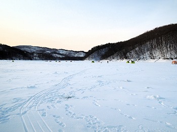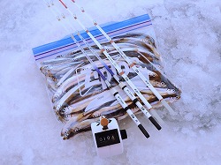25'ワカ様 釣行記 2025年03月18日(火) ・・・軟調子の穂先とはなんぼしてもお友達にれない彼岸荒れの岩洞湖ドーム船・・・ 久しぶりに圧雪路面を走り、岩洞湖へ・・・今朝は暖かくて(-2〜-3℃)雪が降りやすい気温なのだ。 ![]() 白銀の国道455号はとってもきれいだす 圧雪路面は車が汚れなくて良い 吹雪で氷上の状況は全く見えないし、ドーム船も霞んでいる。 ![]() ドーム船は吹雪に霞んでいる 堰堤方面に薄っすらテントが見える 這う這うの体でようやくドーム船に辿り着いたときは、全身雪まみれ。 ![]() 今季2回目の6番船 空いている船は2番船と6番船。 先日2番船に入ったので、今日は6番船に入ってみませう・・・6番船は狭くてラジオの電波が入らないけど。 ![]() 一人一穴の釣り穴も何となく狭く感じるのだ この2種類を装着したものの・・・ 程なくして、6番船に4人組のご家族が入ってきて釣り座を構える。 今日は、先日購入した新作(軟調子)のGANDOU STICK(竹) の使い勝手を検証するのだ。 右手の仕掛け「定番ナイロン」に付けたエサをカットしていたら、間違えて仕掛けの幹糸をカットしてしまったのだ・・・まだ、一度も水中に降ろしてないのに、やっちまいました。 初っ端からの失態に気を取り直して、新たに「段々ワカサギ狐」を張り直す。 ![]() 右手は速攻で張り替え 序盤の魚影は最高なんだすども 軟調子の竹穂先に6.0cmの延長を装着して釣り開始! 穂先が長くてグニャグニャ柔らかいもんだから、どうにもコントロールができないので、ただただ穂先を凝視してアタリを待つだけの釣りなので、結局、すぐ延長を外したのだ。 それでも、穂先がプルンプルン動き過ぎて、思うような誘いができなくて、イマイチ使い勝手が悪い。 ![]() 雪が上がって、ピカピカに輝く湖面 堰堤方面のテントがハッキリ見える それでも、もう少し使ってみれば慣れるかもと頑張ってはみたけど・・・ますますストレスが溜まるだけ。 てな訳で、新作の軟調子はキッパリ諦めて、GANDOU SPECIAL に取り替えることに・・・。 ![]() やっぱりオラは硬い穂先と相性が良いのだ すると、何んと言うことでしょう! 今までのイライラは何だったのと言うくらい、思いどおりの誘いができるし、ワカサギを引っ掻いたり、触ったりするのまで良く分かるのだ。 しかし、時既に遅し・・・群れの出入りが遠退き、空白の時間が長くなり、なかなかアタリを貰えなくなってしまったのだ。 他船の方たちは、あまりの激渋に諦めて、早めにドーム船から帰って行く。 残っているのは、オラの他に3番船に1人と4番に1人の3人だけ。 おまけに、強風に煽られたドーム船が前後左右に大きく揺れ動き、時折、むち打ち症になるほど強烈なショックでガツンと揺すられる。 とにかく、ドーム船が動くようになると、パタッと釣れなくなるのだ。 ![]() 半束を目指すも・・・あと3匹が釣れず そんなこんなで、忘れた頃にアタリが貰えるペースでの拾い釣りをしていたけれど、ついにオラも我慢できず47匹目を釣ったところでギブアップ! 【リール】左右:レイクマスター20 CT-T 【穂 先】左右:GANDOU STICK (軟調子竹) ⇒ GANDOU SPCIAL 28.0(竹) 【仕掛け】左:「誘惑・渋攻」5本0.5号 右:「定番ナイロン」5本0.5号 ⇒ 「段々ワカサギ狐」6本1.0号 【オモリ】左右:4.0g ⇒ 2.0g ⇒ 1.5g 【エ サ】左右:白サシ ⇒ アカムシ ![]() ドーム船が氷でガッチリ固定されればもう一度来ても良いけど・・・ 柔らかすぎる穂先とは、なんぼしてもお友達になれず、結局 GANDOU SPECIAL に交換して口直しを試みたものの・・・あえなく撃沈したのだ。 YouTube 「岩洞湖ドーム船(第7戦)軟調子の穂先(竹)とはお友達になれません」へ 2025年03月14日(金) ・・・岩洞湖ドーム船(第6戦)食いは良くなってきたけど肝心の群れが入りません・・・ 一日中爆風の予報なので、端から氷上に下りるつもりはありません・・・ドーム船へ直行します。 小石川の浅場に、爆風にもめげない強者たちのテント村が出来ている。 ワラビ平にもポツポツ、ドン深には3張り、流石に堰堤付近には一張りもない。 ![]() ドーム船は辛うじて氷に囲まれている 爆風を物ともしない強者のテント ![]() ダメ元で5番船に入ってみます 堰堤付近にテントはない 空っぽのドーム船は、2番船と5番船・・・ってことは、今日は終わったかも? 取り敢えず、5番船にお座敷を構える。 ![]() 魚探は真っ白・・・! 長い穂先の検証をします 左手:「段々」、右手:「定番」 本日のテーマは、穂先を延長アダプターで長くすればモーメントが大きくなり、手感が向上するのではないかとの考えての検証だす。 ところが、頑張って振り上げ誘いなどを駆使するも・・・肝心の群れが入って来ない。 やばい、このままではツ抜けするのも無理なので、2番船へ引越しを決意! ![]() 空っぽの2番船へ引っ越します 初め魚探は白かったけど・・・ 左手を「誘惑・渋攻」に替えます 2番船は始めこそ魚探が真っ白だったすども、次第に群れが入って来るようになり、飽きないペースで穂先を揺ら