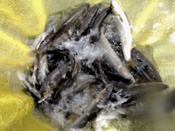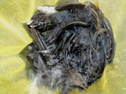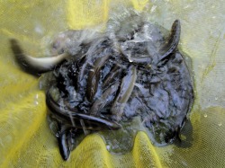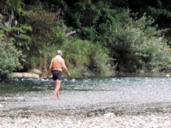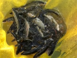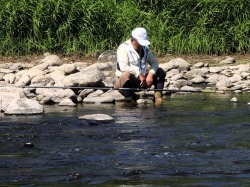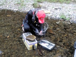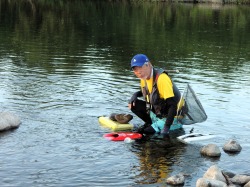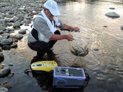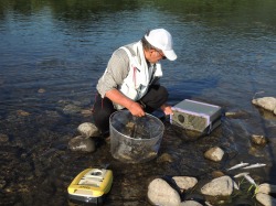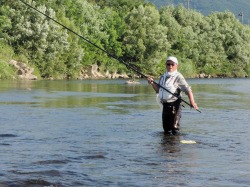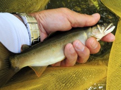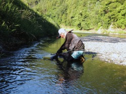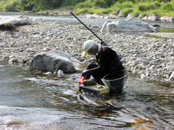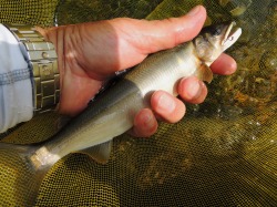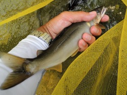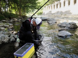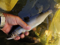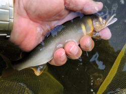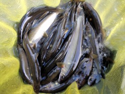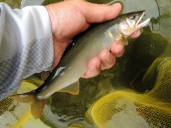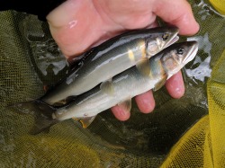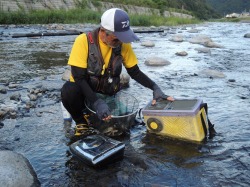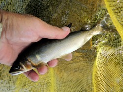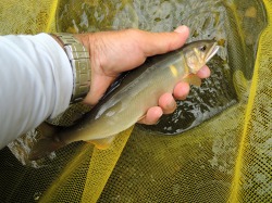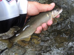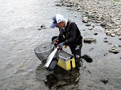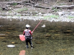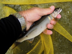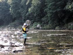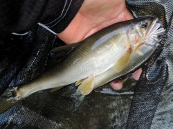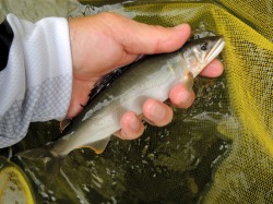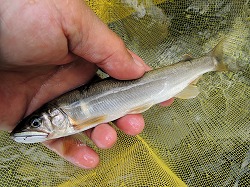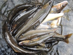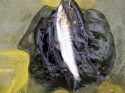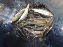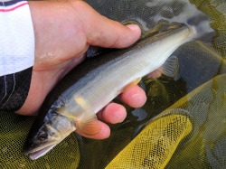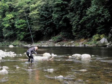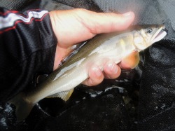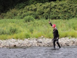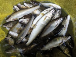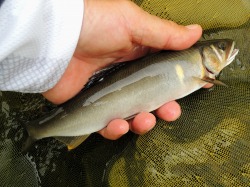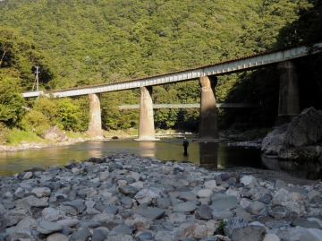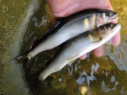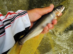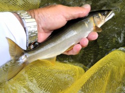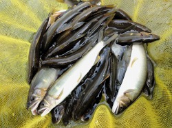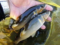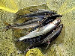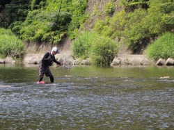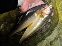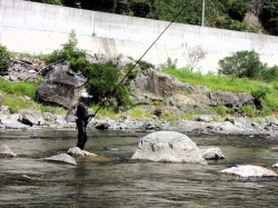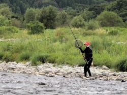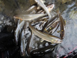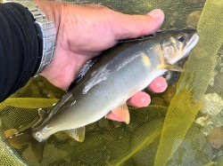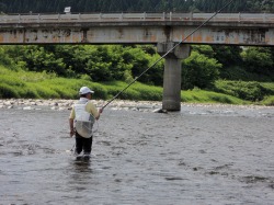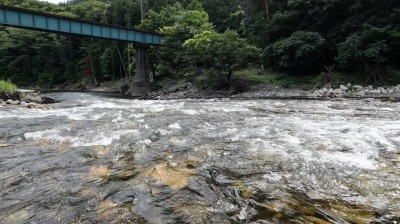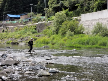 2025年9月12日(金) ・・・桧木内川、今シーズンの鮎釣りは本日をもって納竿します(夏は終わった!)・・・ 先日(9日)に閉伊川の終焉を見届けたばかりなのに、「もしかしたらまだいけるかも?」と淡い期待を抱き、懲りずに桧木内川へ・・・。 水位は平水までは下がっていないものの、釣りは可能。 ただ、川は乳白色に濁り、コキコキの白っ川。 黒っぽい石に小さなハミ痕がわずかに残っているだけ。 ![]() 岩盤地帯で残り垢狙いをするも・・・ 鉄板ポイントも反応なし まずは赤平地区の岩盤地帯を軽く探ってみるも・・・反応なし! 早々に見切りを付けて、西明寺地区へ移動。 ![]() 若干高水で水位的には絶好なのだが・・・ 早い流れからは反応が貰えない 河床の形は増水前とほとんど変わっていないので、瀬肩から瀬を釣り下るも・・・こちらも反応なし。 早い流れではアタリがもらえないので、瀬肩の右岸寄りの緩い流れを我慢の子で泳がせる。 たまに“交通事故的”に掛かるのは、ビリサイズ~15cmの真っ白な鮎。 ![]() 乳白色の白っ川・・・小さなハミ痕を僅かに確認 Kさんと二人で大苦戦! どうやら成熟した野鮎はほとんど下ってしまったようだす。 ![]() 掛かり鮎は小さくても良い泳ぎをしてくれる 消化不良だけど納竿といたします これでは鮎釣りの醍醐味もなく、さすがに面白味がないので・・・今シーズンの鮎釣りは本日をもって納竿します。(キッパリ!) 【 竿 】ナイアード75(ソリッド穂先) 【水中糸】アーマード0.06号 【鼻カン】6.5mm(ハリス1.25号) 【ハ リ】6.5号4本イカリ → 5.0号4本イカリ ※結局、桧木内川では3回しか竿を出せず、年券の元は取れませんでした。 3/660 YouTube「夏は終わった!」本日をもって納竿します 2025年09月09日(火) ・・・終焉を迎えた閉伊川(花原市地区)辛うじてオデコは免れたけど・・・ 底石は曇り、死んだ個体が頻繁に流れてくる閉伊川。 早くも「今シーズンの鮎は終わった」という声が聞こえてくるけど・・・。 ![]() 良型のハネが盛んに見られるけど・・・ 底石の曇りが縄張り鮎の少なさを物語っている 向かったのは下流部・花原市(けばらいち)地区。 釣り人の姿はまだまだ多く、良型が盛んにハネを見せてはいるものの・・・果たして釣れるんだべか。 この辺は、オラの好きな瀬がないので、否が応でも平瀬やチャラ瀬の泳がせ釣りになる。 野鮎のサイズが大きそうなので、竿は「トリプルフォース早瀬90」を選択。 ところが、どんなに我慢強く泳がせてみても・・・まったく反応なし。 良型の群れ鮎はウジャウジャいるのに、縄張りを持つ追う鮎は居ないのだ。 結局、頑張りも虚しく午前中はオデコを喰らう羽目に。 ![]() 午後になると益々釣り人が増えてきた 養殖オトリがヘロヘロになったので、午後はソリッドを装着した「ナイアード75」を使用。 この辺りでは一番荒いと思しき流れにオトリを通しながら釣り下る。 ![]() 釣れた鮎は全く働く気がない! Kさんが苦戦しているんだものオラが釣れないのは当たり前 ようやく背掛かりで良型がヒットしたものの、力なくすぐ浮いてしまい、まともに働いてくれない。 仕方なく養殖オトリに何度も頑張ってもらうことに。 シモの“なんちゃって瀬”で、もう1匹を追加したところでギブアップ! ![]() Kさんはそんな状況下でもシッカリ釣っている 終焉が明らかな釣果 本日の釣果は午後の2匹のみ。 オデコは免れたものの、川は明らかに終焉を迎えている。 【 竿 】トリプルフォース早瀬90 ⇒ ナイアード75(ソリッド) 【水中糸】アーマード0.06号 ⇒ アーマード0.08号 【鼻カン】6.5mm(ハリス1.25号) 【ハ リ】6.5号4本イカリ ⇒ 8.5号2本ヤナギ ・・・と言いつつ、次回のためのオトリはしっかり確保しました。 2/657 YouTube「終焉を迎えた閉伊川(花原市地区)」 2025年9月4日(木) ・・・ハミ痕がめっきり減り、底石がすっかり曇った閉伊川(茂市伊地区)に降参!・・・ 今日は茂市地区へ。 川はハミ痕がほとんど見られず、底石も曇り気味。それでも釣り人は多く、どうにも不吉な予感が漂う。 ![]() ポイントが沢山あるオラ好みの瀬だすども・・・ ハミ痕がめっきり減り、底石は曇っている まずは瀬からスタート。 開始わずか1分で強烈なアタリに竿を絞られるも・・・痛恨のバラシ! その後、瀬の一番荒い筋だけを探って釣り下がるも、無反応。 「荒い瀬の流芯には居ないな」と判断。 対岸(右岸)を攻めるには、どうしても荒い瀬の流芯に立ち込まなければ竿が届かない。 ![]() Kさんも大苦戦! 釣れれば良型だすども・・・ 根性で立ち込み、竿抜けを狙う。 結局、オトリが野鮎に替わるまで1時間半もかかった。 やはり対岸のチャラ瀬が竿抜けになっていたようで、そこでポツポツ拾い釣り。 そんなこんなで、午前中は2回バラしたものの、なんとか9匹の釣果。 午後は反応がまるでないので、「鮎は居ない」と判断し、ここはキッパリ諦めて場所移動を決意。 しかし、何処も釣り人で一杯だす。 ![]() ここの底石もすっかり曇っている そんな状況でも、Kさんは良